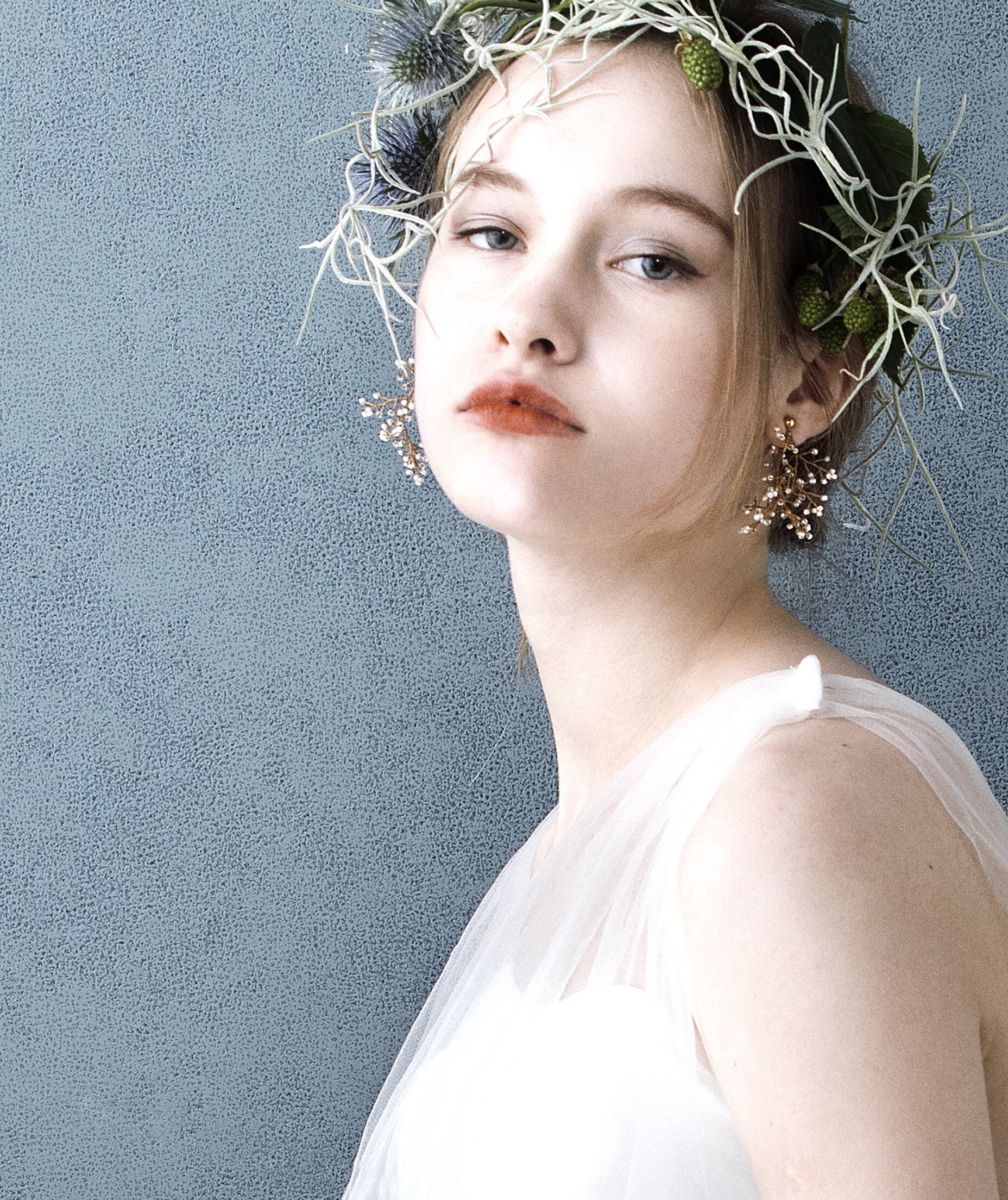 繊細な霞草がくるりと輪になり、小さなリースをイメージした、フープピアスとイヤリングです。