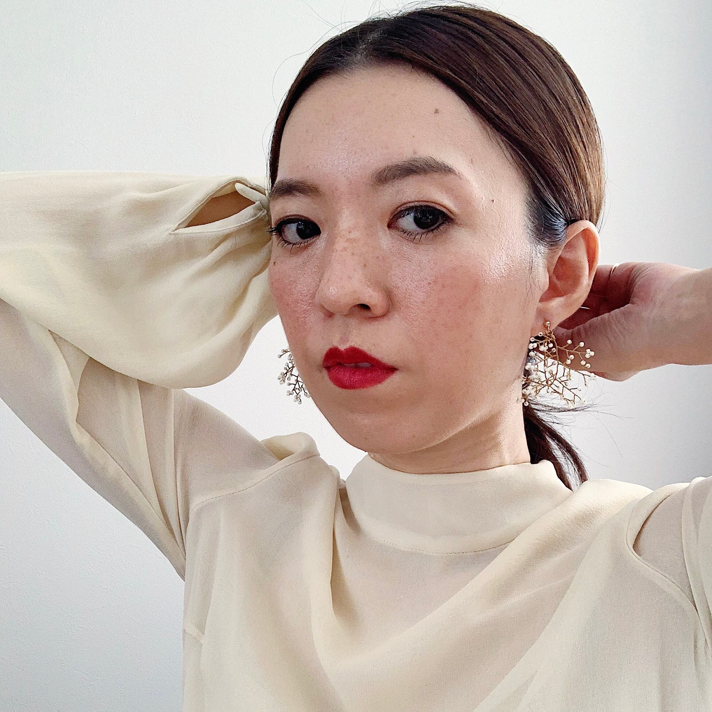 生成りビーズがカジュアルでラフな印象を与えてくれます。