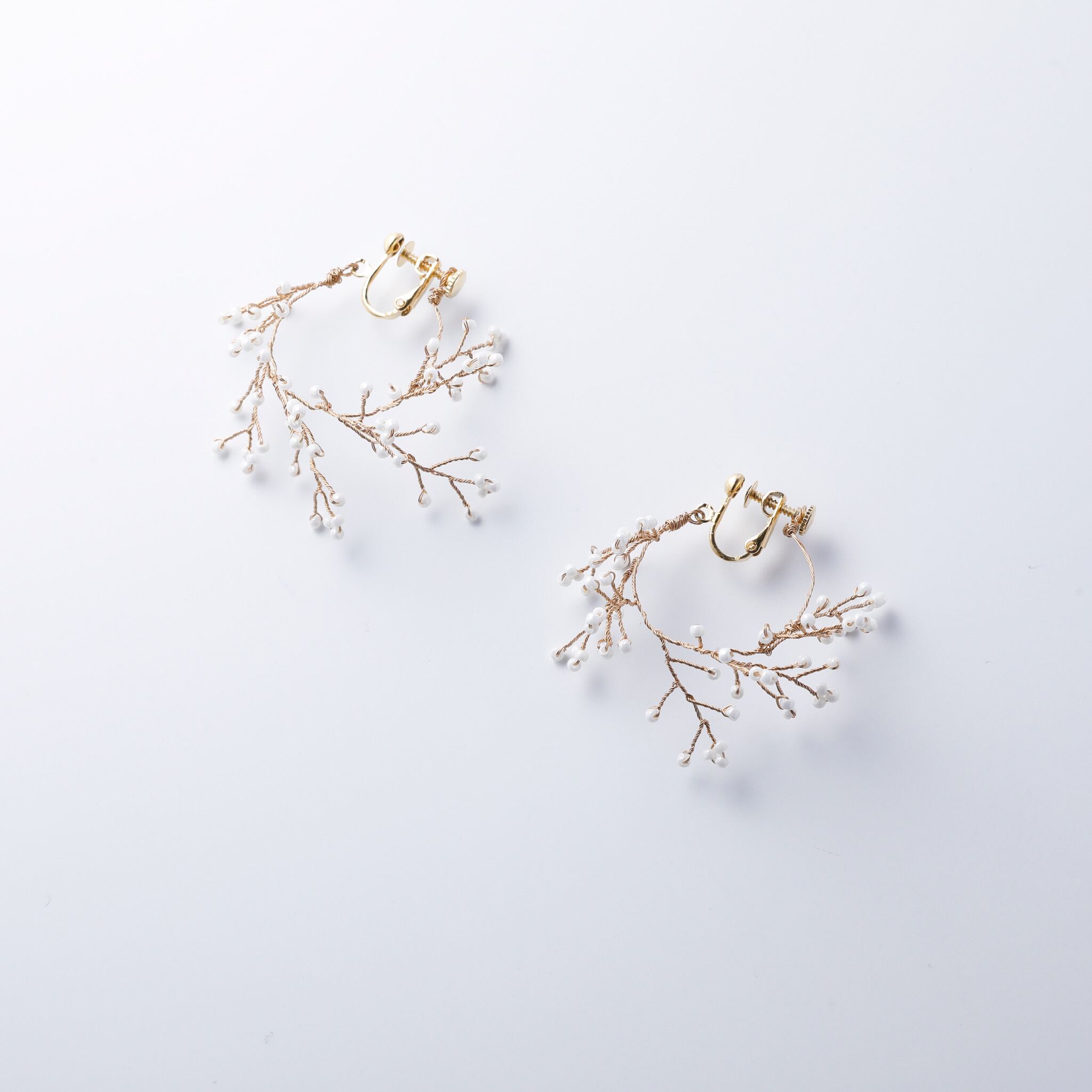 18KYGピアス 霞草 フープ(アイボリー)
