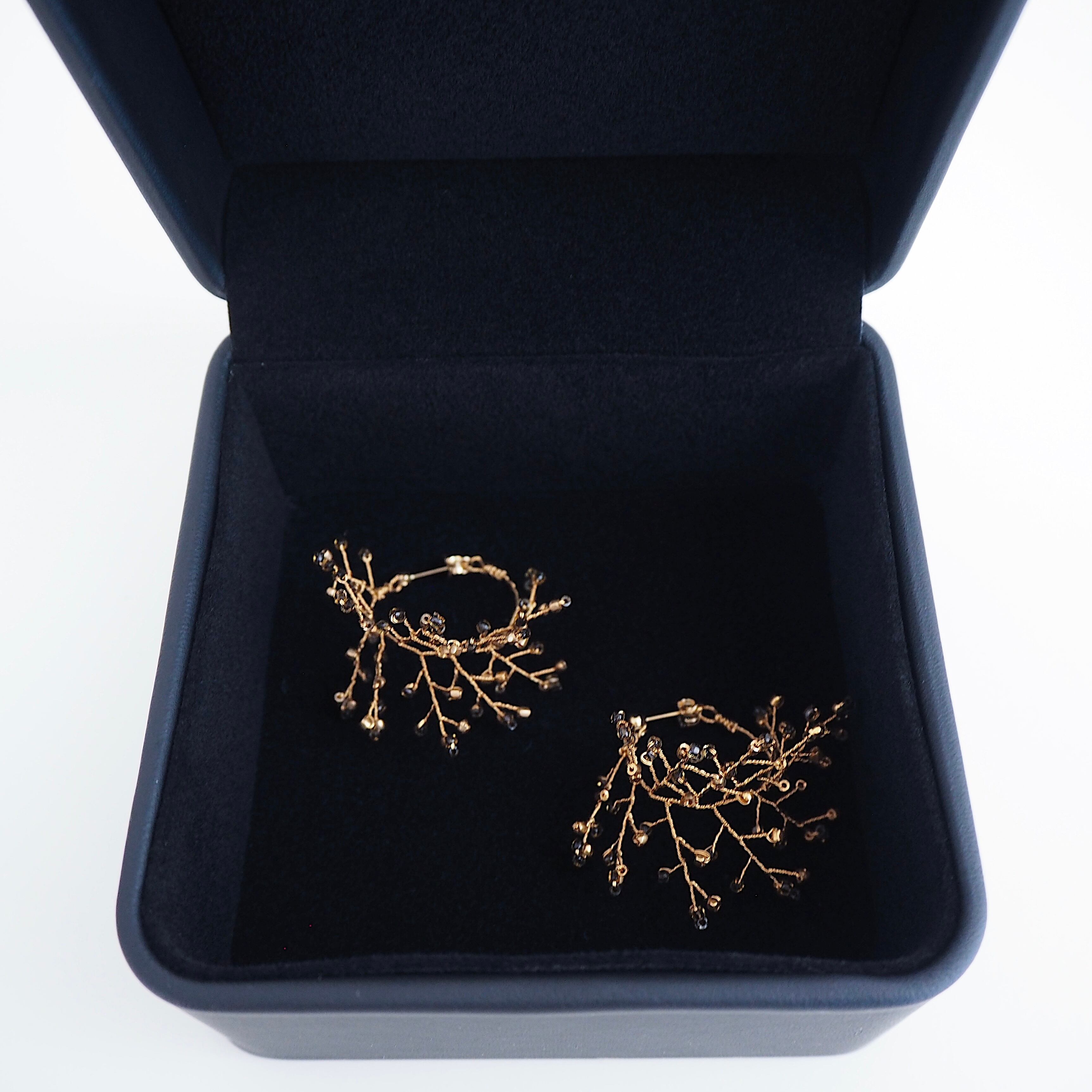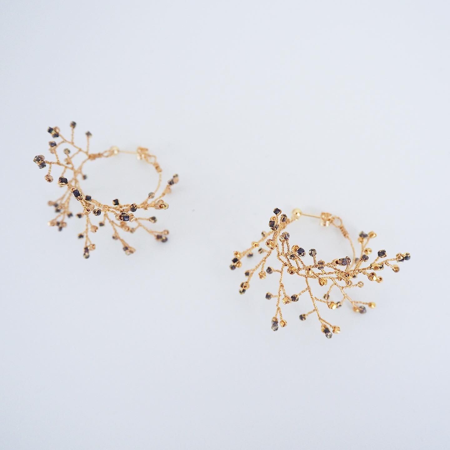 18KYGピアス 霞草 フープ(ブラック×ゴールド)